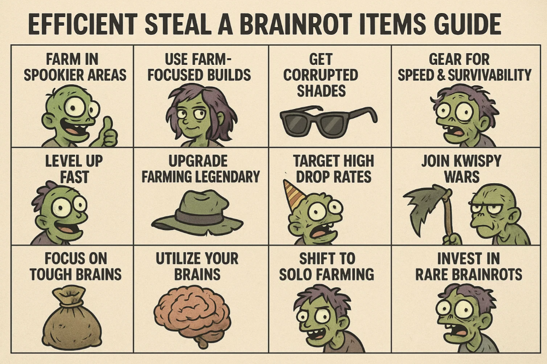 Efficient Steal a Brainrot items guide with 16 tips to farm faster, optimize builds, and trade smart. Learn when to buy Steal a Brainrot characters or grab rare Steal a Brainrot Brainrots for sale to complete your collection quickly.
