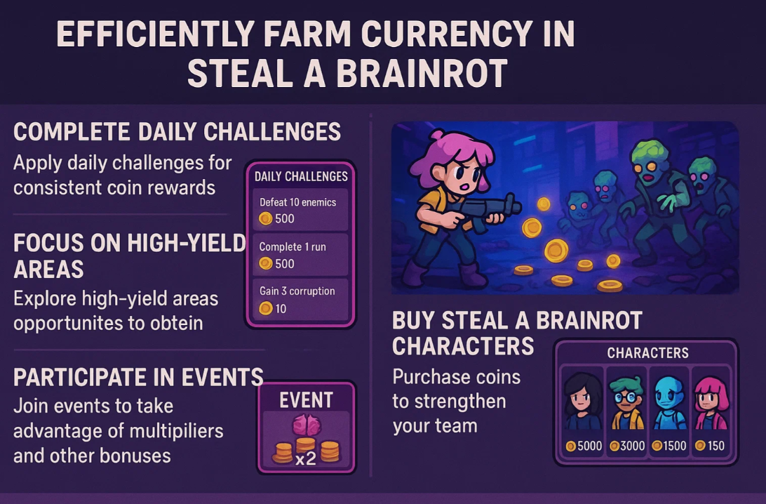 Learn how to farm currency efficiently in Steal A Brainrot. This guide covers daily challenges, high-yield areas, and events, with tips on team optimization and how to buy steal a brainrot characters for faster progression. Perfect for boosting in-game coins and unlocking more content.
